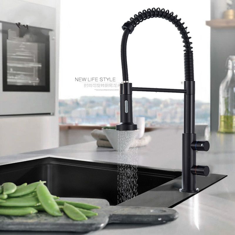 Rose Gold Black Style Kitchen Spring Faucet Pull Down Dual Spouts Single Handle Water Mixer Tap 360 Rotation Kitchen Mixer Tap Aliexpress from ae01.alicdn.com