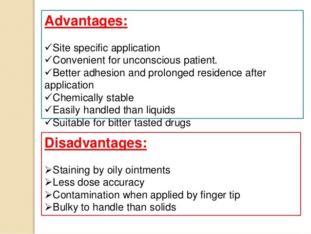 Of the two oral solid dosage forms commonly employed in this country, the tablet and the capsule, the tablet has a number of advantages. They may be made with or without diluents and may differ greatly in size, shape and weight. Pastes should be formulated by paying much attention to their resultant spreadability, which determines the uniformity of the dose as well as the efficacy of drugs for local or systemic application. Solid and soft dosage forms, as well as liquid, are selected, depending on the required duration of action, method of use, the duration of the effect of the.