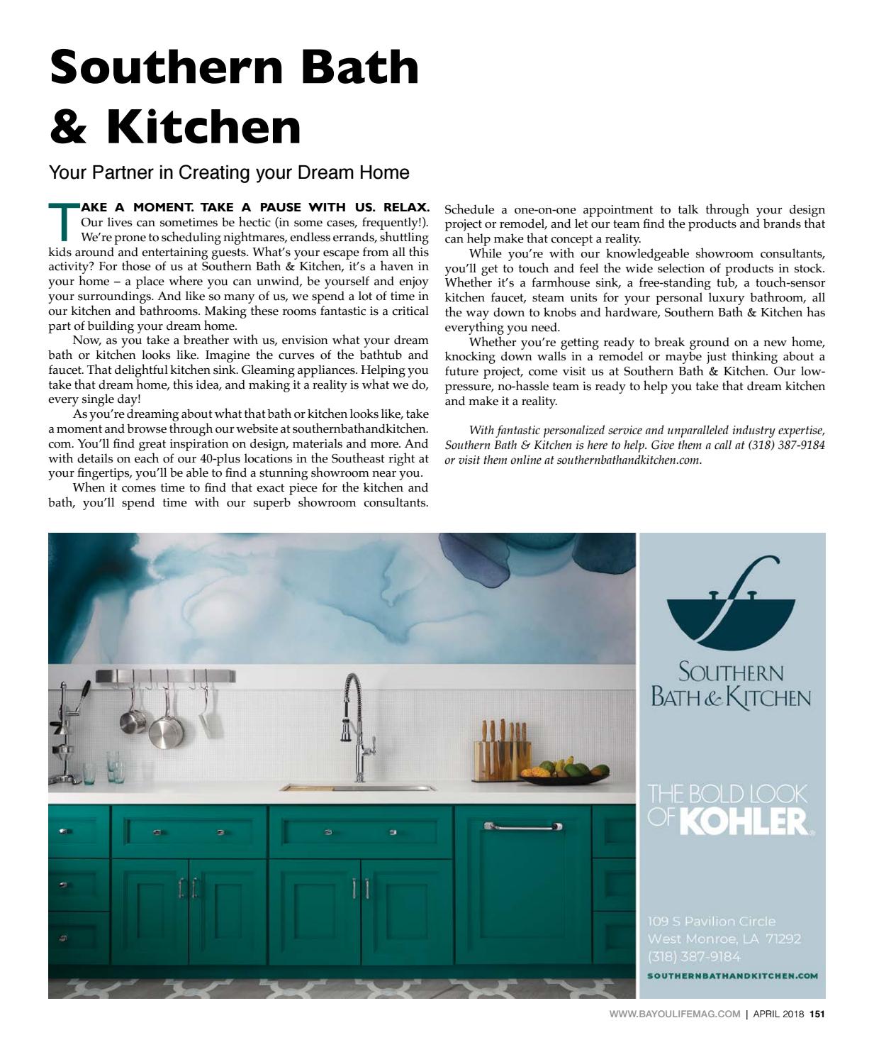 Immerse yourself in elegant lifestyles at any of our southern bath & kitchen. Adventures in decorating, thrifting, cooking, fashion & gardening. We carefully select distinctive products from manufacturers around the world, including premium cabinetry, countertops, appliances, showers, tubs, faucets and sinks.