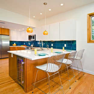 The midcentury modern inspired kitchen. Ejemplo de cocina retro con fregadero encastrado, armarios con paneles lisos y puertas de armario de madera. Enjoy free shipping on most stuff, even big stuff. Upon entering the house, an open atrium entry in the middle of the.