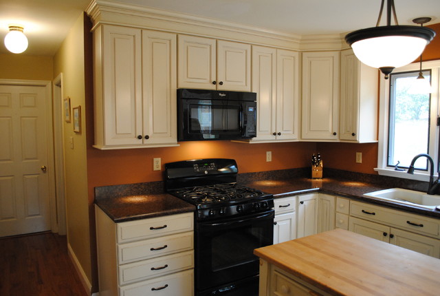 For a sophisticated look from your kitchen cabinets, choose these cream kitchen cabinets with mocha glaze.