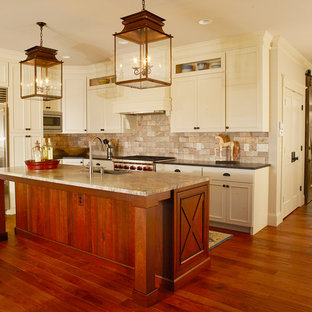Red Kitchen Backsplash Design Ideas Pictures Remodel And Decor Red Kitchen Cabinets Barn Red Kitchen Red Kitchen Island from i.pinimg.com