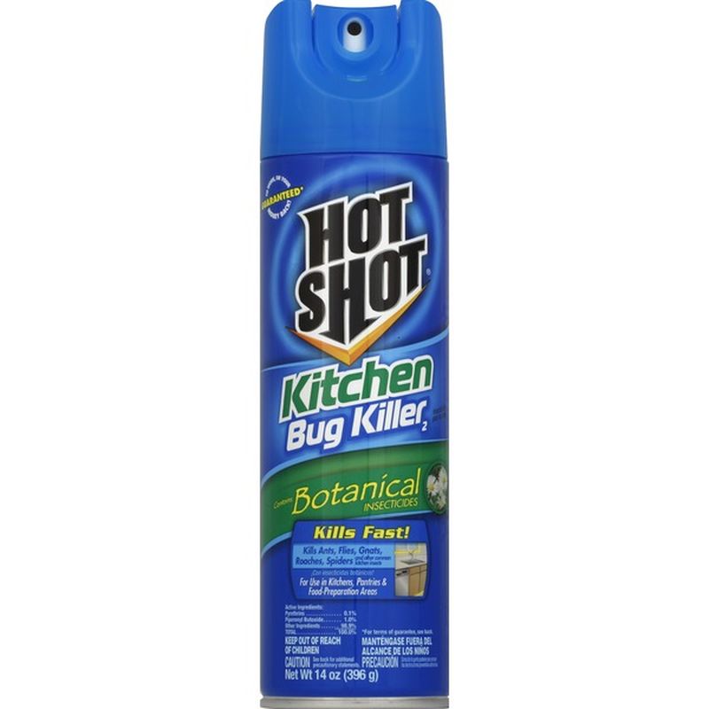 47+ Hot Shot Kitchen Bug Killer Botanical. Hot shot kitchen bug killer kills ants, flies, gnats, roaches, spiders and other common kitchen insects. The formula contains botanical insecticides to control roaches, ants, spiders, flies.