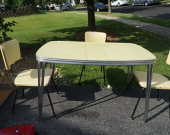 Vintage kitchen formica table & leaf 4 chairs turquoise pink 1950's elvis style. We have a wide range of styles and shapes to choose from, so you're sure to find a set. The patterned table tops usually sell for more money. Italian louis xvi style bank desk and chair, 1920s, set of 2.