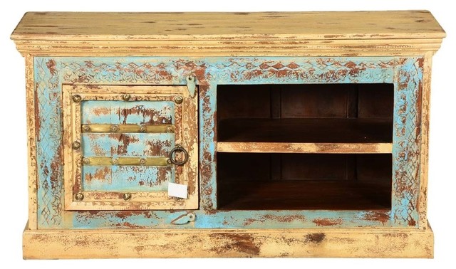 Our wooden, rustic tv stands with shelves give the home a warm, traditional feel. It would easily fit behind a couch or be placed in a bedroom for storage. Santa fe antique turquoise 60 tv stand.