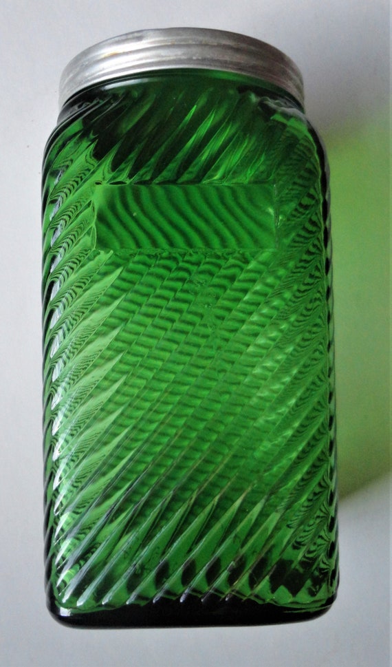 47+ Green Depression Glass Canister Set. Owens diagonal stripe depression glass canisters 1930 four 7 inch caanisters $40 each two six inch canisters $35 each three 5 inch canisters $30 each salt and pepper 4 inch $25 set one complete set of repro labels. In the canister holds 47 oz (but not recommended for liquids) and it is about 8 1/2 tall and 4 square.